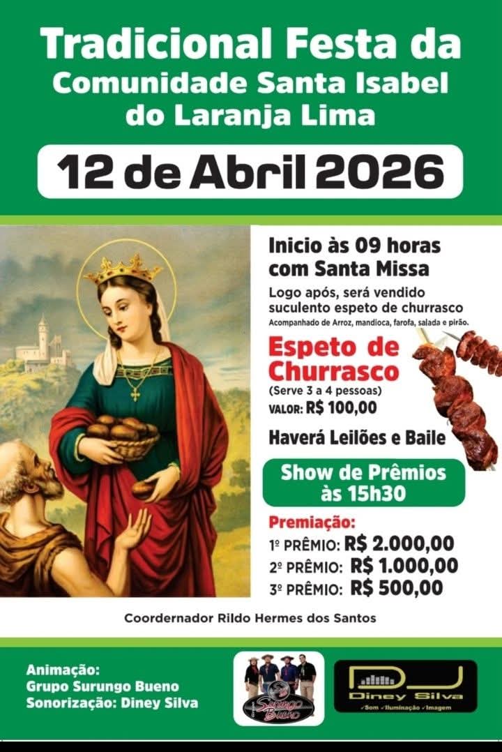 A comunidade Santa Isabel se prepara para mais uma grande festa! A Tradicional Festa da Comunidade Santa Isabel do Laranja Lima será realizada neste domingo (12/04), reunindo fé, alegria e confraternização entre famílias e amigos.