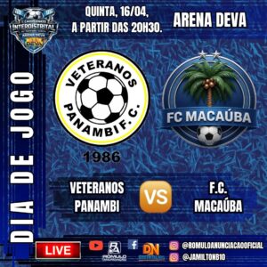 Às 20:30 horas, Panambi e Macaúba duelam pelo grupo B.
