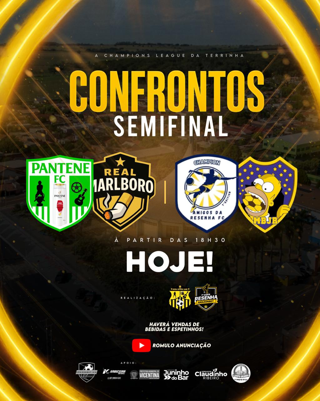 QUARTA-FEIRA (22) DE SEMIFINAIS NA COPA RESENHA CHAMPIONS LEAGUE AMAZONBET EM VICENTINA
