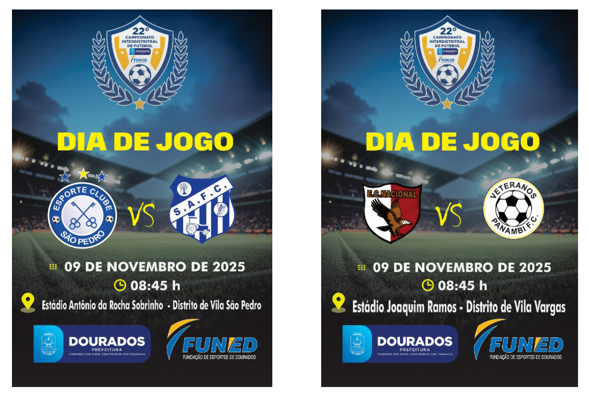A Funed (fundação de esportes de Dourados), realiza neste próximo domingo (09/11), mais uma rodada do Campeonato Interdistrital de Futebol. A competição que a cada domingo vai ficando mais disputada na tabela de classificação.